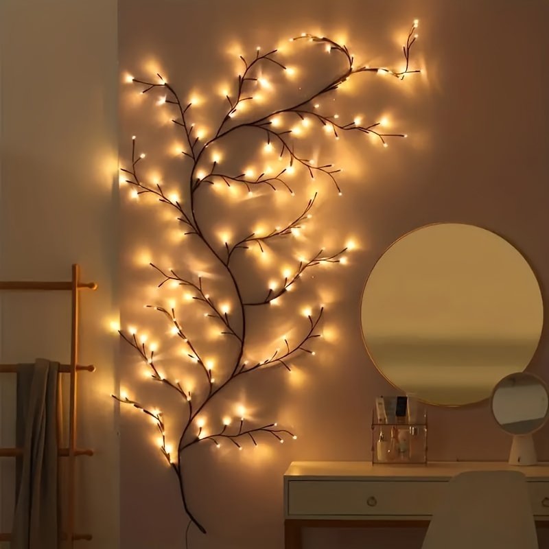 I enjoy having some kind of light on throughout the year; it really brightens up the space. This set of branch lights is so charming and adds a lovely glow. The flexible branches make them easy to shape, and I can envision decorating them for different seasons or holidays. They bring a delightful touch of light to the room!