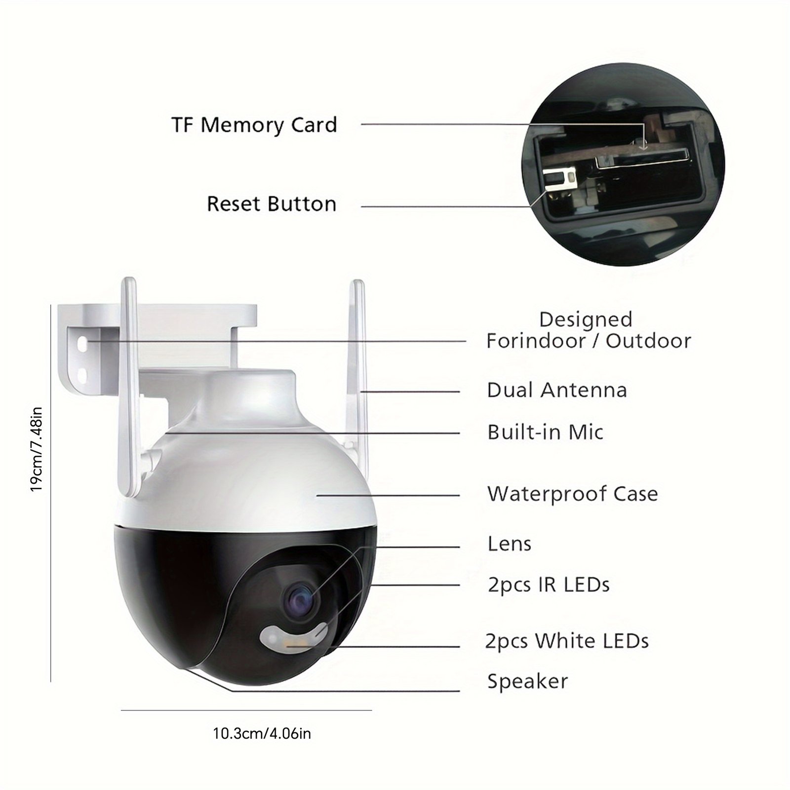 1pc Wireless Security WIFI Camera Indoor Outdoors, Mini 360° PTZ Panoramic IP Camera, Full HD 1080P Smart Home Camera, 2.4GHz,Baby, Pet MonitorTwo Way Audio, Waterproof Motion Detection Alarm Push,works With Phone Computer Ipad,Remote