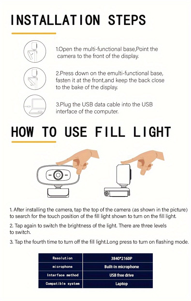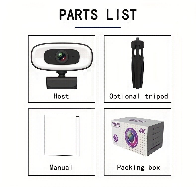 4 reviews for 4K HD Computer Webcam, Plug And Play, No Driver Required USB Interface Webcam, Built-in Microphone, Webcast Fill Light, Voice Call Conference Camera, Work Camera, Laptop External Webcam