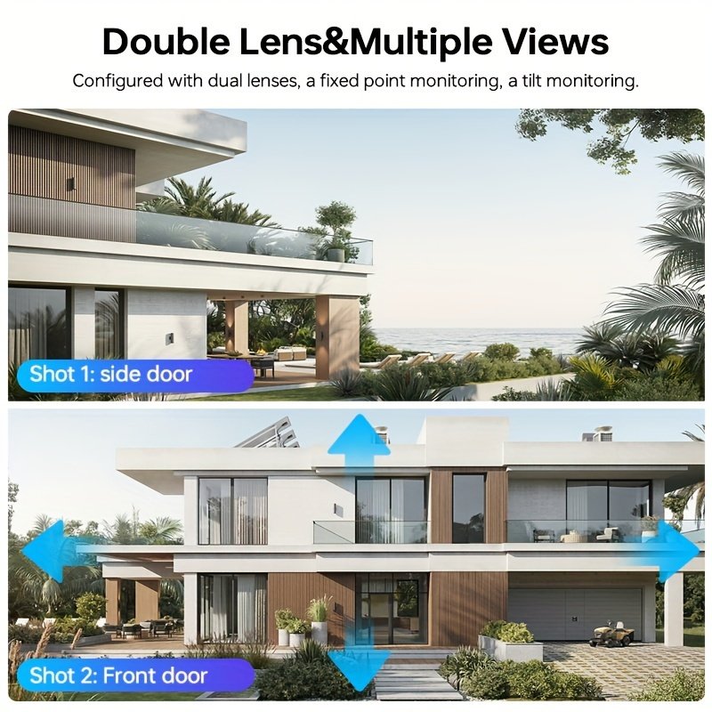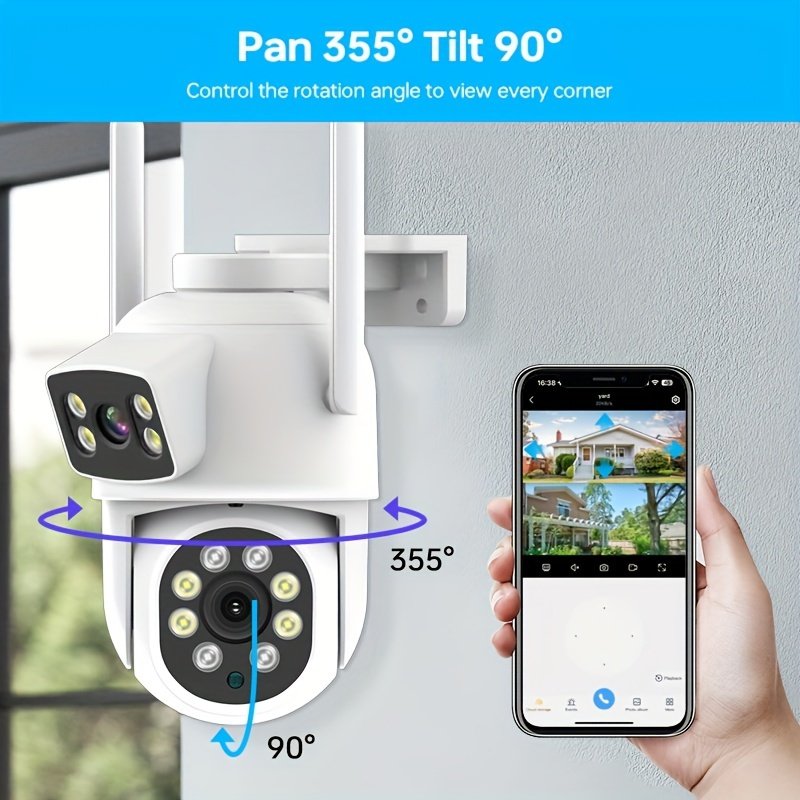 4MP(2MP+2MP) WiFi Security Camera Outdoor, Dual Lens 2.4/5ghz Wireless IP Camera Video Surveillance For Home Security CCTV Monitor,AI Human Tracking, Color Night Vision,Two Way Audio,Pan Tilt Rotation,Work For Eseecloud APP,Without TF Card