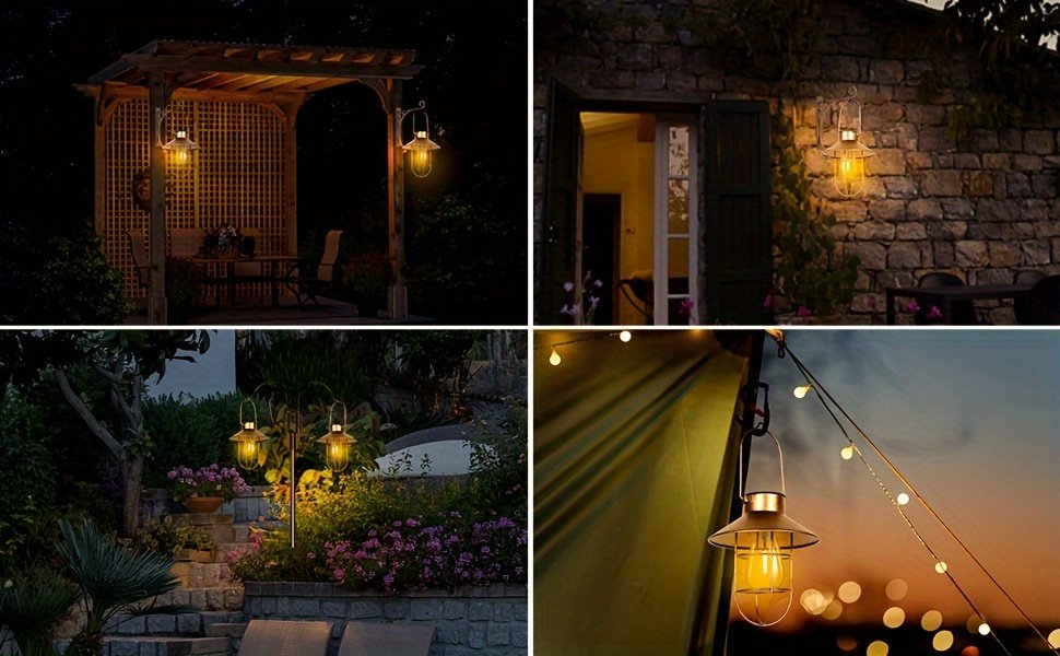 Outdoor Lanterns With Solar Power, Hanging Solar Lights Outdoors, Metal Waterproof Solar Lights With Warm White Edison Bulbs For Fence/garden/yard/porch Decoration