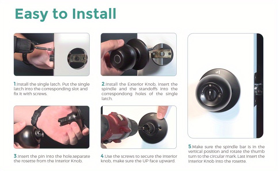 Smart Door Knob, Fingerprint Door Lock, Smart Lock Biometric Door Lock Fingerprint Door Knob With Tuya App Control, Suitable For Bedroom, Cloakroom, Apartments Offices, Hotels (Battery Included)