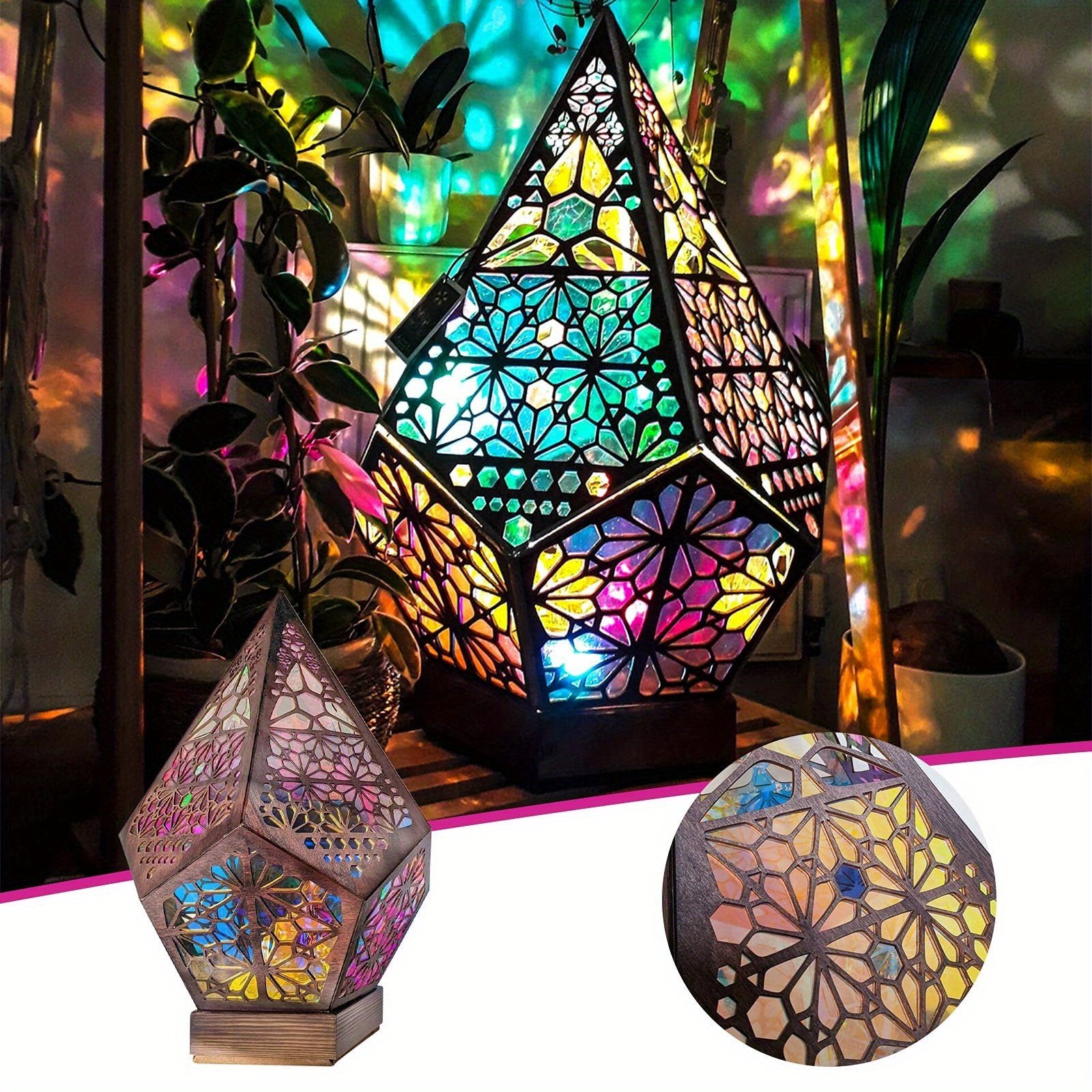Wooden Bohemian Floor Lamp, USB Charging Hollow Geometric Colorful Lamp Retro Bohemian Light Lamp, LED Colorful Diamond Lights 3D Projection Night Lamp Desk Lamp Home Decor